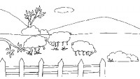 Pecore in campagna da colorare Disegno di un gruppo di pecore al pascolo in un bel paesaggio di campagna, da stampare e colorare. Cliccare sul disegno per stamparlo: