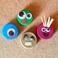 Un’idea di gioco per bambini da proporre durante une festa di compleanno. Preparate tanti tappi di tutti i colori, occhi, fogli colorati, forbicine, colla e organizzate un concorso: chi farà il mostro più mostruoso?