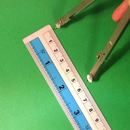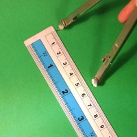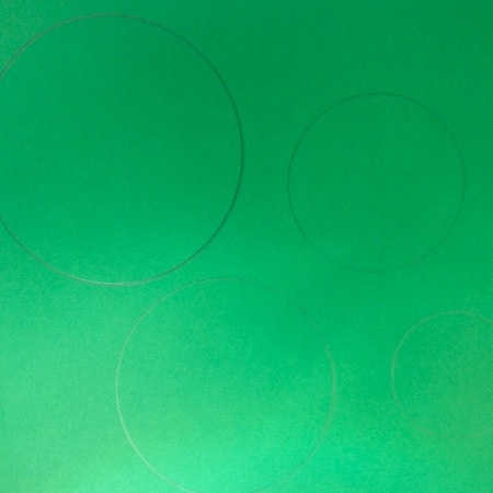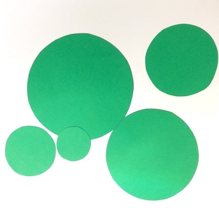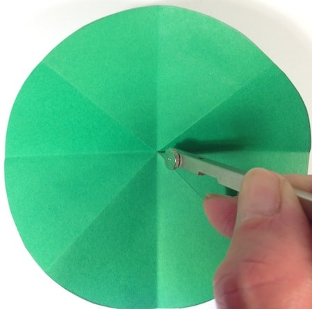 - Sulla carta verde, con il compasso, disegnare 5 cerchi delle seguenti dimensioni: di raggio 5,5 cm – di raggio 4,5 cm – di raggio 3,5 cm – di raggio 2,5 cm – di raggio 1,5 cm.