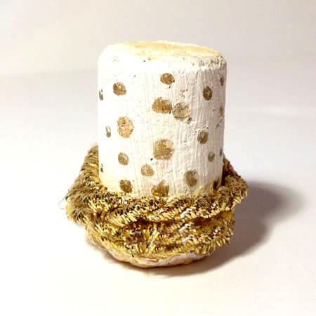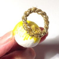 - Formare un piccolo cerchio con un pezzo di cordicella dorata (sarà l’aureola) e incollarla sul retro della testa dell’angelo;