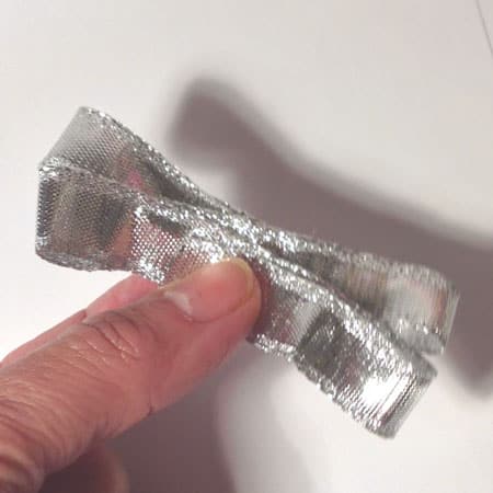 - Piegare il nastro argentato (o dorato) in modo da formare delle ali e incollarlo sulla schiena dell’angelo;