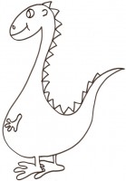 Disegno di un simpatico dinosauro tutto tondeggiante, da stampare e colorare.