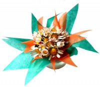 - Avvolgere il bouquet nella seconda striscia di carta e fissare il tutto annodandolo con il secondo pezzo di filo.