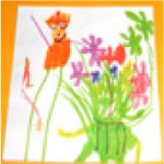 • Chiedete al bambino di fare un bellissimo disegno sul foglio. Potete anche utilizzare un disegno già pronto che incollerete sul foglio quadrato.