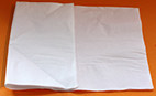 • Appoggiare il tovagliolo ben aperto sul tavolo. Piegarlo a metà, nel senso della lunghezza.