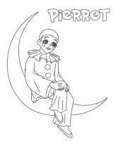 pierrotUn disegno del tenero Pierrot, seduto su una fetta di luna, da stampare e colorare. Nonostante il nome francese, Pierrot è una maschera nata in Italia con il nome di Pedrolino verso la fine del Cinquecento, ad opera di Giovanni Pellesini, attore della Compagnia dei Gelosi.