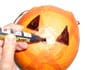 - Ritagliare lunghe strisce di carta velina verde o di altri colori ed incollarle sotto la zucca di carta.