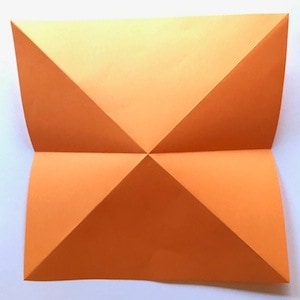 • Capovolgere il lavoro e piegare il foglio a metà, come nell’immagine. Aprirlo di nuovo.