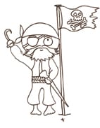 Pirata con bandiera dei pirati da colorare Disegno del capitano dei pirati, con il suo uncino e la sua bandiera dei pirati, da stampare e colorare. Cliccare sul disegno per stamparlo: