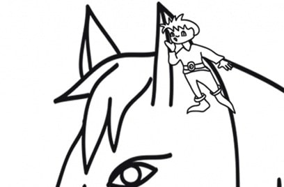 Pollicino parla con il cavallo Disegno da stampare e colorare di Pollicino che parla con il suo amico cavallo. Per andare fino al campo coltivato da suo padre, Pollicino si fa trasportare nell’orecchio del cavallo. Cliccare sul disegno per stamparlo:
