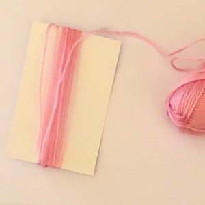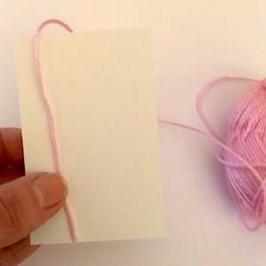 - Prendi un cartoncino della dimensione di un biglietto da visita (o un biglietto da visita) e avvolgi il primo filo colorato sul lato più lungo. Fai circa 20 giri;