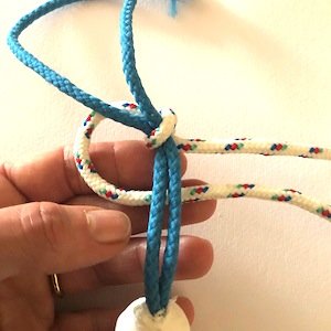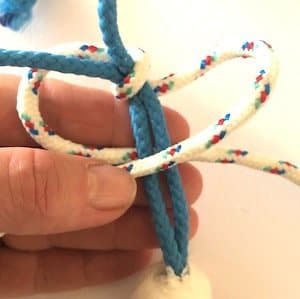 - Prendi la seconda corda e annodala a circa 7/8 cm dalla pallina.