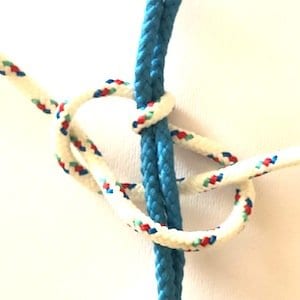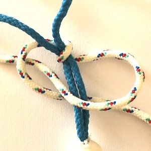 - Infila la corda di sinistra nello spazio a destra (dal basso verso l’alto).