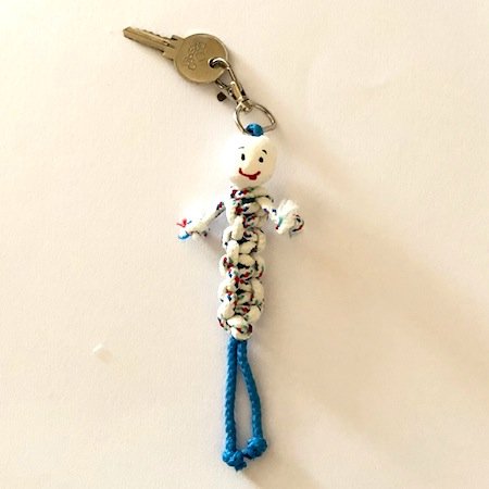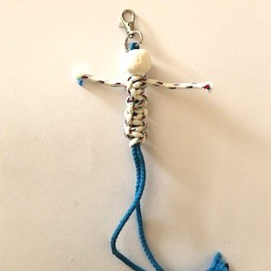 Come fare un portachiavi in paracord per la Festa del papà, un portachiavi in corda intrecciata a forma di omino. Un lavoretto per bambini facile da fare, adatto ai bambini della scuola primaria e ai bimbi più grandi della scuola dell’infanzia. L’intreccio non è complicato, basta capire come fare il primo nodo a forma di otto e il resto viene da sé!
