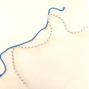 - Taglia 2 pezzi di paracord (o corda) di colori diversi di circa 70 cm l’uno.