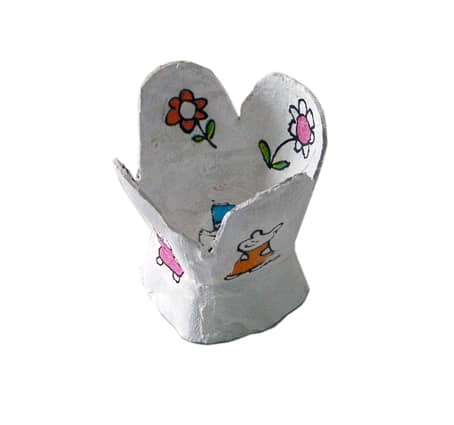 - Con i pennarelli, disegnare dei piccoli motivi sul portauovo oppure ritagliarne da tovaglioli di carta ed incollarli utilizzando della colla-vernice.