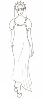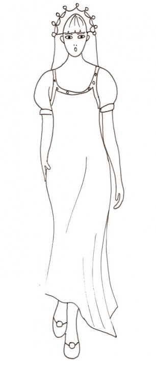 Disegno di una principessa che indossa un lungo vestito stile impero, da stampare e colorare gratuitamente.