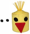 - Ritagliare ed incollare un triangolo di cartoncino rosso al centro del rotolino, per fare il becco del pulcino.