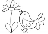 Questo pulcino che si è fermato a guardare un grande e bellissimo fiore. Un disegno da stampare e colorare gratuitamente.