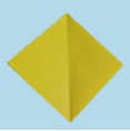 - Piegare il quadrato a metà, punta sopra punta, in modo da ottenere un triangolo, segnare la piega e riparirlo. Sistemare il quadrato in modo che la linea segnata sia in verticale, come nell’immagine:
