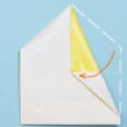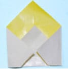 - Tracciare un quadrato di 12 cm x 12 cm nel foglio di carta gialla e ritagliarlo. Tracciare un quadrato delle stesse dimensioni nel foglio di carta bianca e ritagliarlo.