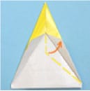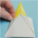 - Aprire leggermente l’ultima piegatura ed infilare un dito all’interno dei triangoli (di destra e di sinistra) in modo da aprire le piegature ed ottenere dei triangoli più grandi in entrambe le parti.