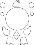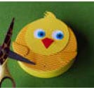 - Con la punta delle forbici (utilizzata da un adulto), fare due piccoli fori alla base del corpo del nostro pulcino per le zampette.