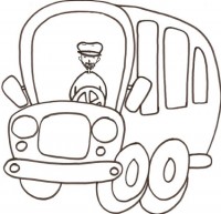 Pulmino con autista da colorare Disegno di un pulmino guidato da un simpatico autista con un bel cappello, da stampare e colorare. Cliccare sul disegno per stamparlo: