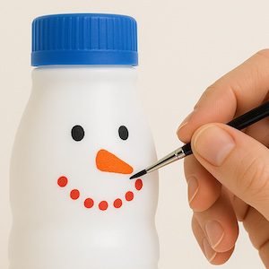 Con una semplice bottiglia di plastica del latte, qualche colore e un po’ di fantasia, nascerà un simpatico pupazzo di neve pronto a decorare la casa o la classe!