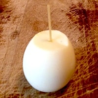 • Infilare lo stuzzicadenti (o lo spaghetto) nell’uovo più grande, il corpo. Infilare la testa (l’uovo più piccolo).