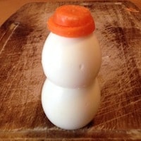 Pupazzo di neve con le uovaUn’idea divertente per preparare le uova per i bambini durante l’inverno o per creare facilmente una ricetta di antipasto di Natale che piacerà molto ai più piccoli! Preparate 2 uova sode, 3 pezzetti di carota, pezzettini d’oliva nera (o anche capperi di quelli piccoli) e un stuzzicadenti (o uno spaghetto) e chiedete ai bambini di assemblarli, ne saranno felicissimi!