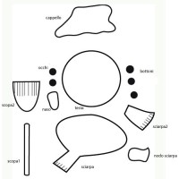 - Cliccare sul disegno delle sagome del pupazzo e stamparle. Ritagliare i vari elementi e tracciarne i contorni sui fogli colorati corrispondenti: la sciarpa sulla carta rossa, il cappello e la scopa sul marroncino/dorato, il naso sull’arancione…