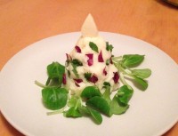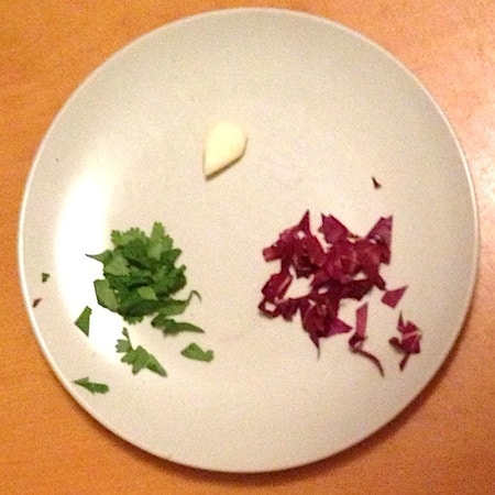 • Tagliare la foglia d’insalata rossa (carota o pomodorino) a pezzetti.