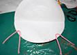 Nei pezzi di piatto rimasti, disegnare e ritagliare due orecchie.
