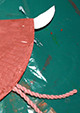 Aprire il corpo della renna e incollare due pezzi di cordicella piegata in due per fare le 4 zampe della renna.