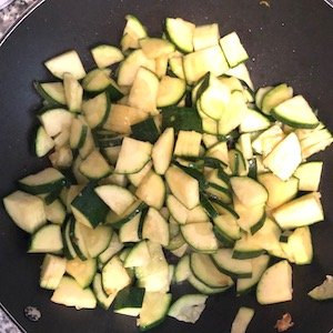- Aggiungere le zucchine e lasciarle cuocere per qualche minuto. Bagnare con il vino e aggiungere il sale.