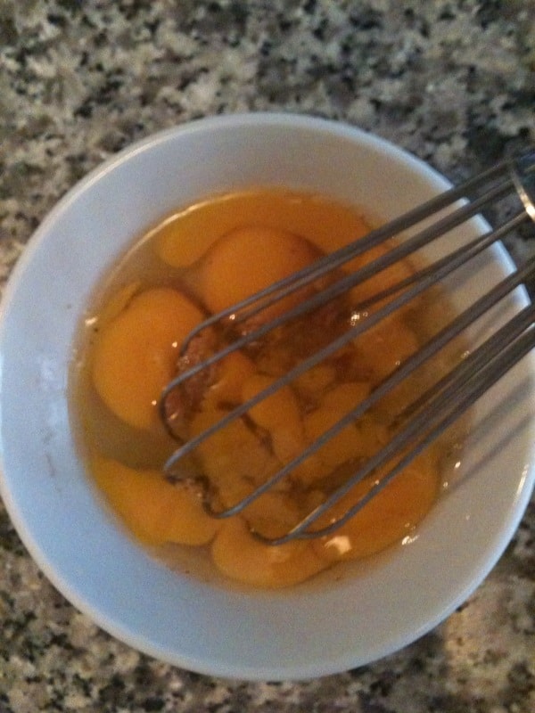 • Rompere le uova in una ciotola e sbatterle con una forchetta od una frusta, mescolando tuorli e albume. Aggiungere sale, pepe ed un cucchiaio di latte.