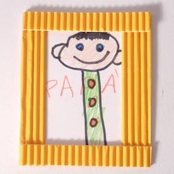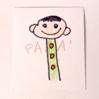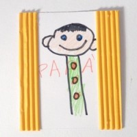 - Ritagliare un rettangolo di 8 cm x 6 cm nel foglio da disegno. Disegnare un ritratto del papà! Se il bambino inizia già a scrivere, aggiungere la scritta “PAPA'”.