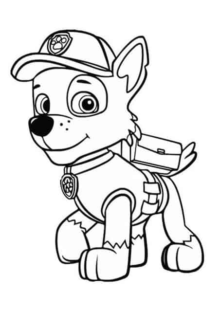 Un disegno del cucciolo Rocky, uno dei Paw Patrol, la famosa squadra dei cuccioli, da stampare e colorare. Rocky è un cucciolo meticcio, di razza mista, ed è il cane riciclatore della squadra. È il più creativo e intelligente del gruppo e ha paura dell’acqua! Questo nonostante sia molto amico di Marshall e Zuma (cuccioli che la usano spesso). Il suo colore è il verde.