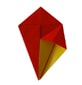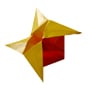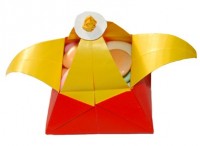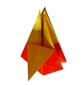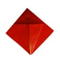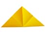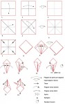 - Utilizzando le pieghe che avete fatto, portare i 3 angoli del modellino verso il basso. Appiattire il foglio. Seguire lo schema stampato.