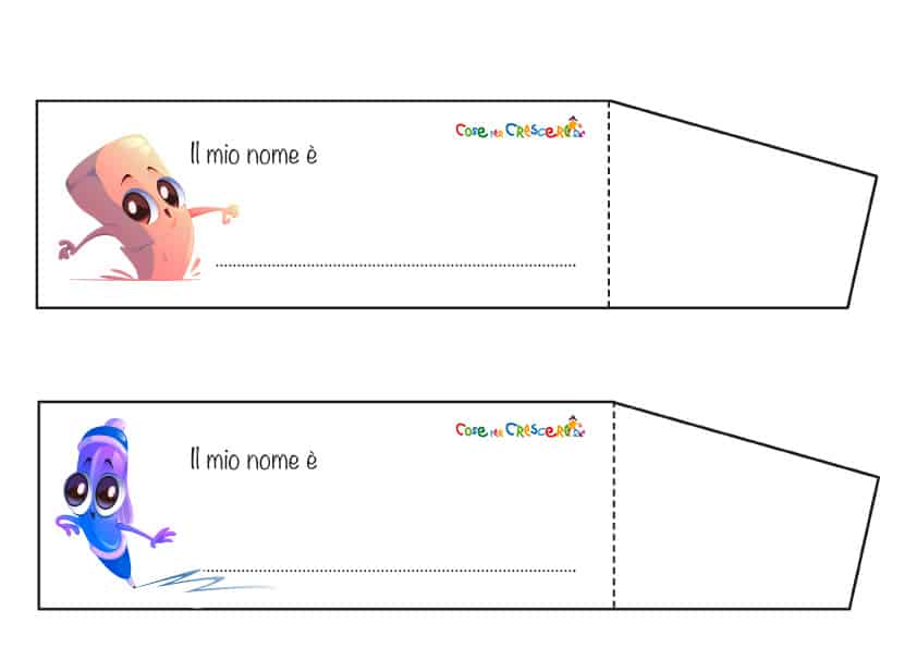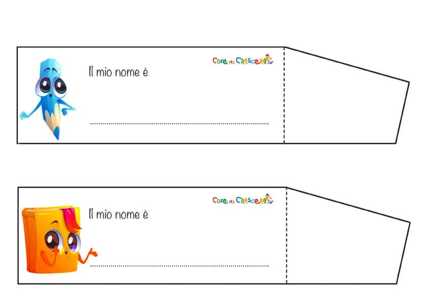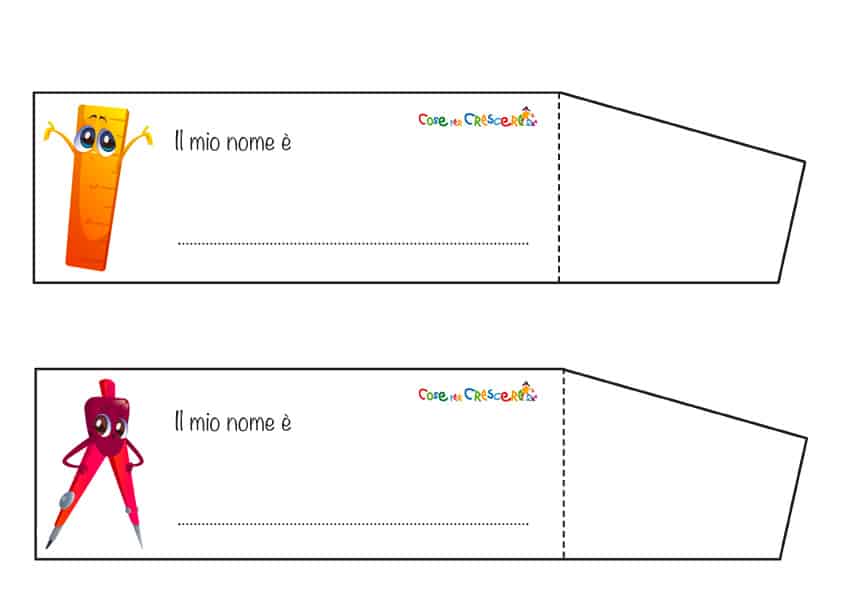 Una serie di simpatici segnaposto da stampare per la scuola, utili per i primi giorni di scuola e l’accoglienza dei bambini all’inizio dell’anno scolastico e per aiutarli ad inserirsi nella loro nuova classe. Abbiamo preparato segnaposto con diversi disegni, adatti sia alla scuola primaria che alla scuola dell’infanzia. Ogni segna posto dovrà essere ritagliato seguendo la linea di contorno e compilato dal bambino che dovrà scriverci il proprio nome. Basterà poi piegare l’aletta esterna lungo la linea tratteggiata e appoggiare la targhetta con il nome sul banco.