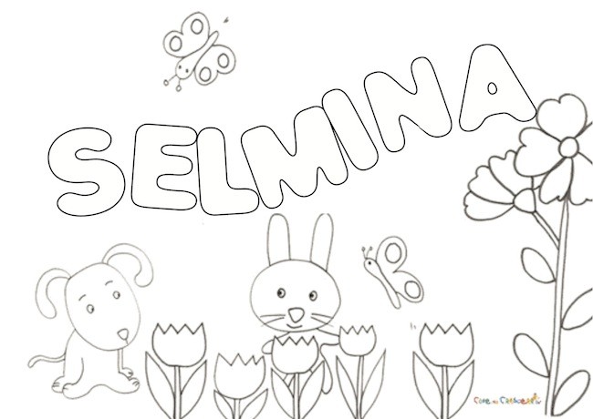 Disegno del nome SELMINA pronto da stampare e da dare alla vostra bimba da colorare, per divertirsi con il proprio nome ed impararne i caratteri.