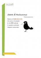 Sera d’autunno Una piccola poesia giapponese per bambini che parla d’autunno e di un corvo… Una poesia per i bambini della scuola primaria da stampare gratuitamente. Sopra un ramo seccato Un corvo s’è posato E s’è stretto nell’ale In questo scolorato Vespero autunnale. POESIA DA STAMPARE Clicca sulla poesia per stamparla: