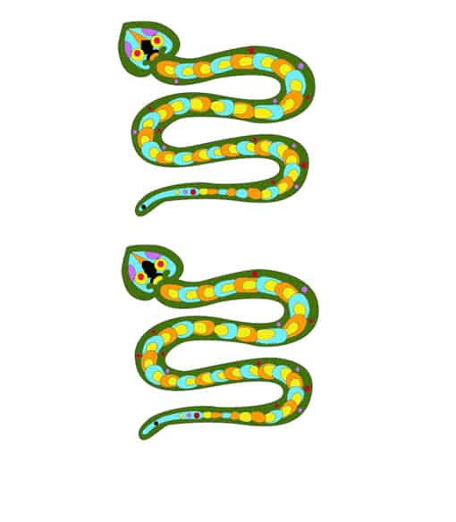 Trova le 7 differenze tra questi due serpenti, un simbolo dello zodiaco cinese. Un gioco per imparare ad osservare e a concentrarsi che piace a tutte le età! Aguzza la vista…
