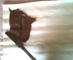 - Spalmare la crema di cioccolato in modo uniforme su tutta la pasta sfoglia.