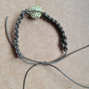 - Infilare 1 piccola perla su ogni estremità dei fili del bracciale e chiudere con un nodo. Fissarlo, eventualmente con un punto di colla.