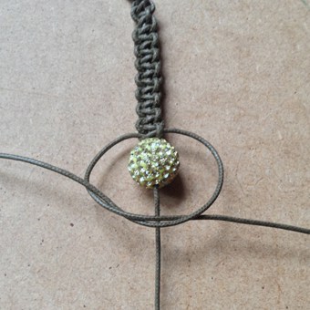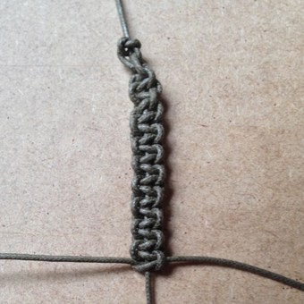 - Con questo nuovo filo, fare una serie di nodi piatti, alternando destra e sinistra, su un lunghezza di circa 2 cm.