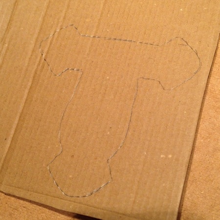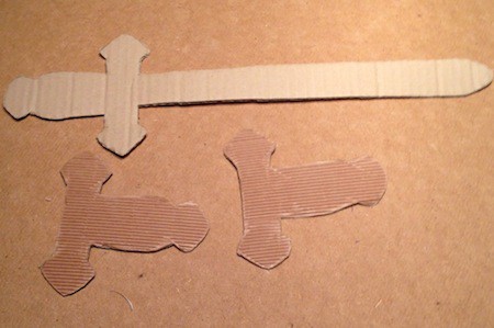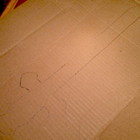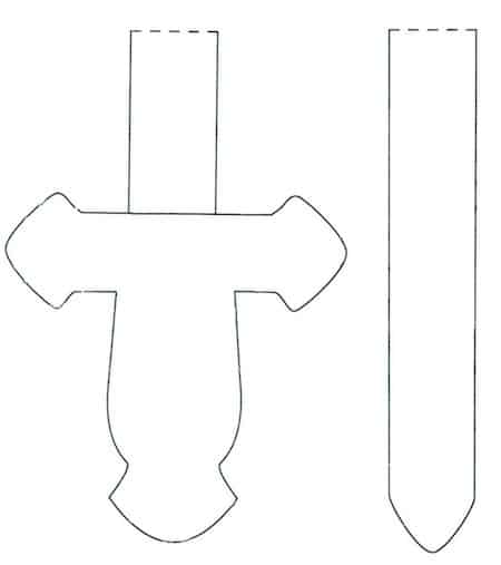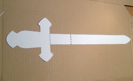 - Ritagliare le due parti della sagoma, comporre la spada sul cartone riciclato e con la matita, riportare la sagoma sul cartone.