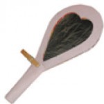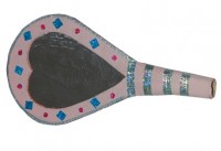 - Dipingere il rotolino dello stesso colore dello specchio. lasciarlo asciugare. Fare due incisioni nella parte superiore del rotolino ed infilarlo nello specchio. Incollarlo (potete aiutarvi con una molletta fino a quando la colla non sarà asciutta).