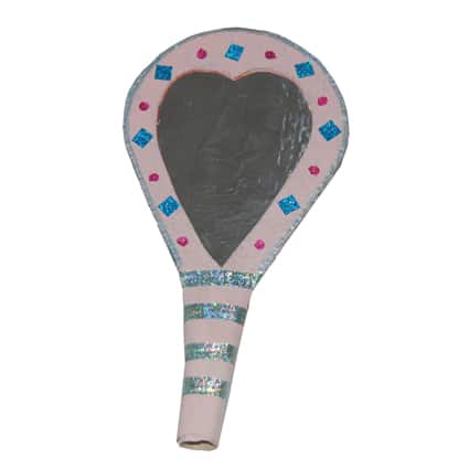 - Dipingere il retro dello specchio o incollarlo su un foglio di carta colorata (ritagliare poi le parti in eccesso). Decorare tutto lo specchio con stickers, brillantini o piccoli disegni.